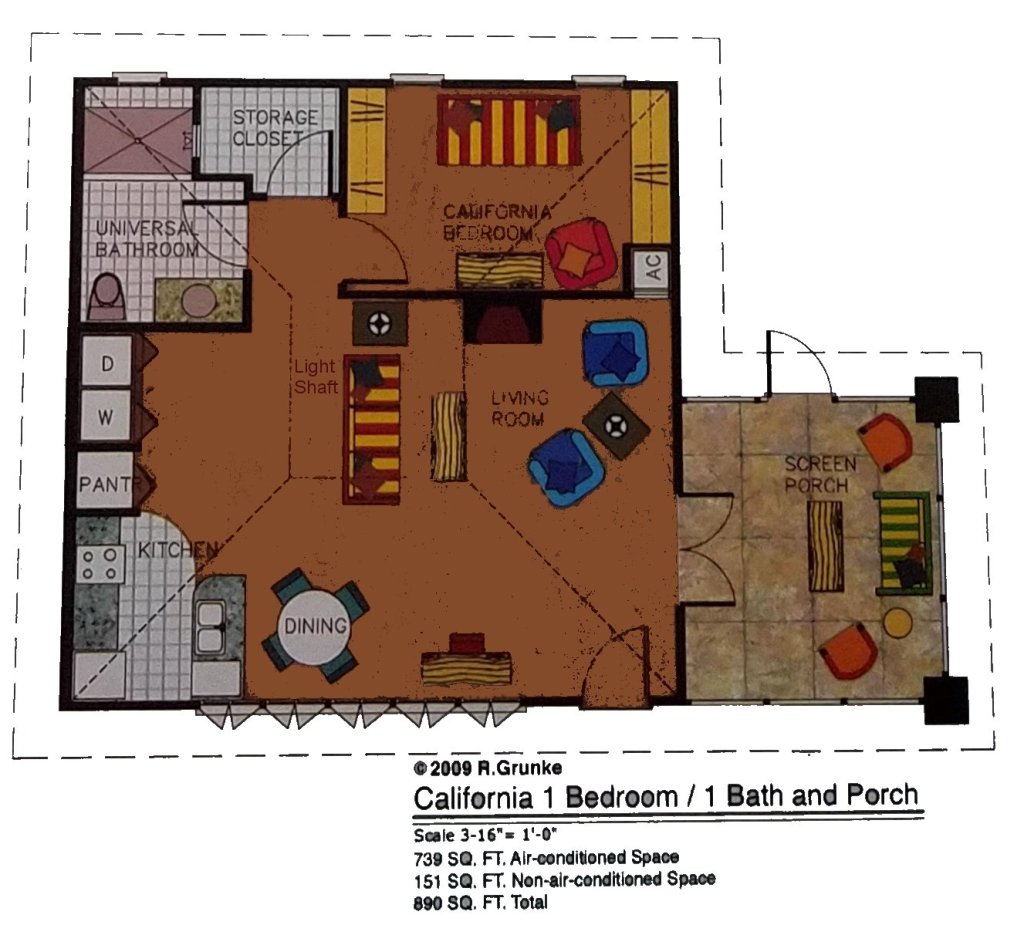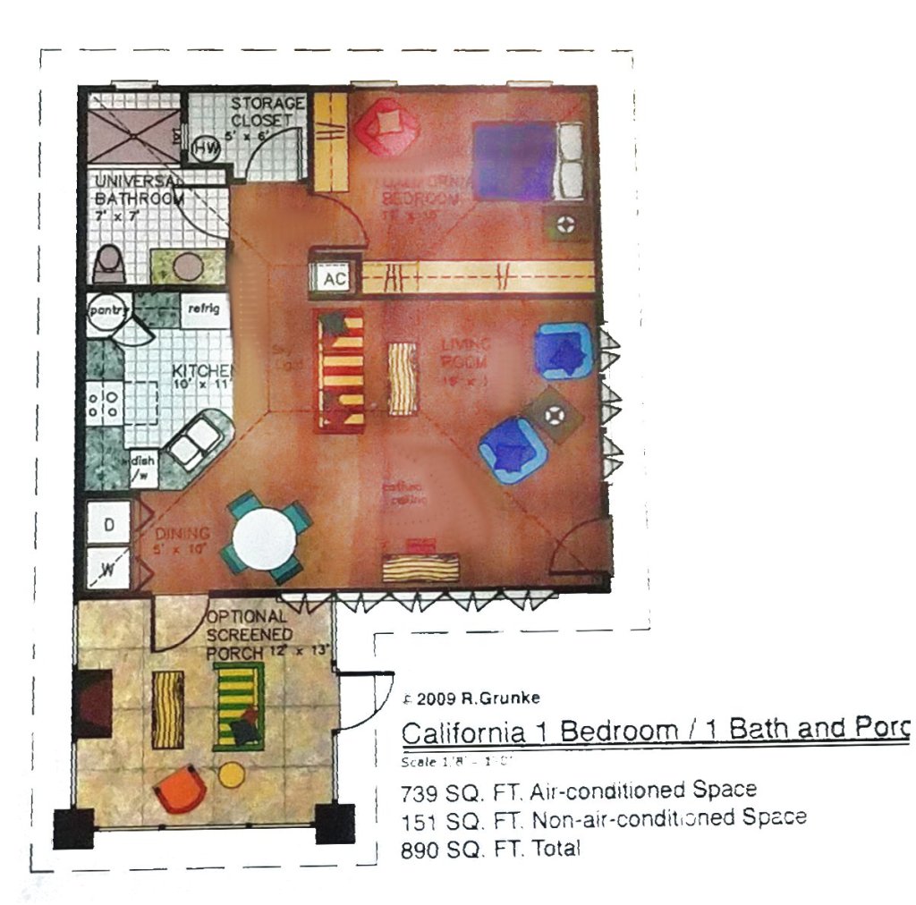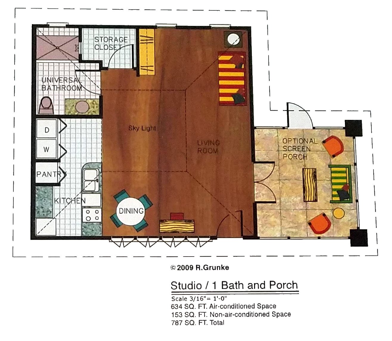Roger: Studio with 1 BA and porch 787 sf total